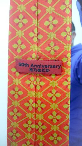そして、二人目は花澤さん。襟のない服は着ないと豪語する花澤さんは、いつもシャツを着用しています。なので花澤さんには、今年芸能生活50年を迎えた池乃めだか師匠のネクタイを買ってきました。